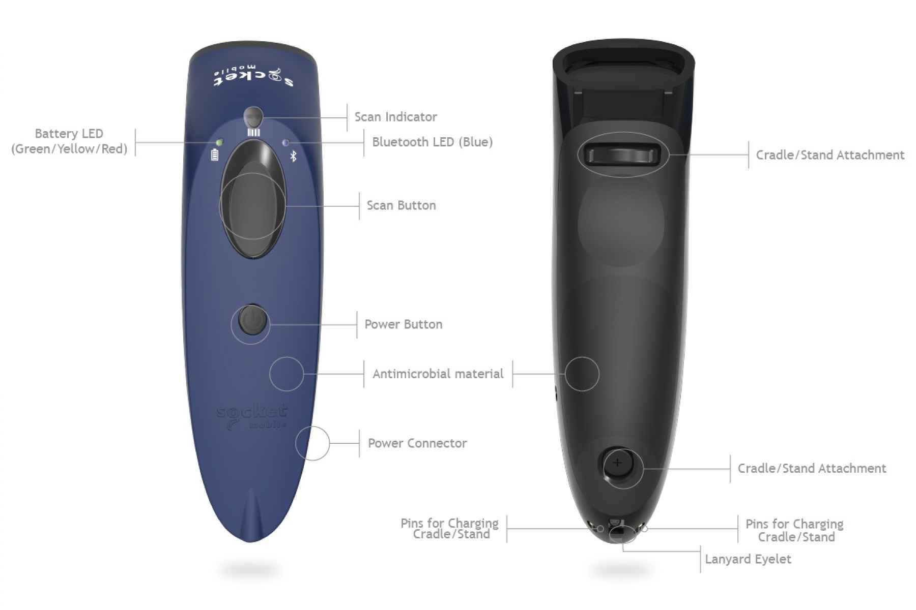 These Scanners have the capability to scan from paper or your computer/mobile phone screen. A light-weight, ergonomic structure with an anti-microbial casing and a long-lasting rechargeable battery life will ensure your Scanner will withstand long work days with power to last over 16 hours. With five colour options of Blue, Green, Red, White and Yellow, you can be sure to find one that will fit most work place styles and environment needs. LED Batteries, Bluetooth and Scanning Notifications make the Scanner more intuitive and user friendly. It is compatible with all applications that previous Socket Mobile Barcode Scanners were, so software changes are not required.